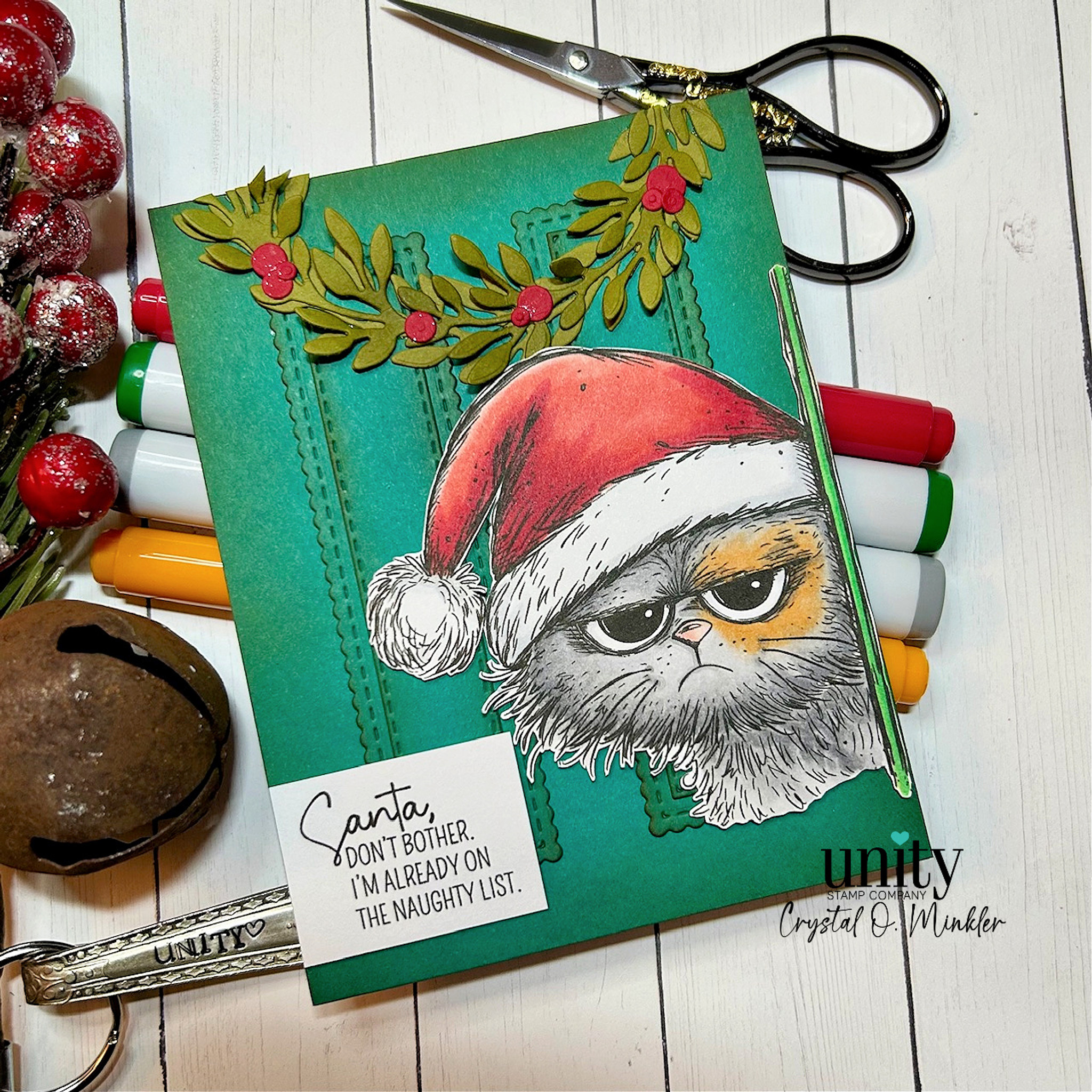 - "Santa, don't bother. I'm already on the naughty list" sentiment measures approximately 1" x 1.5".